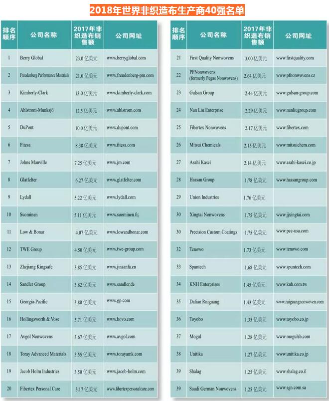 2018年世界非織造布生產(chǎn)商40強(qiáng)報(bào)道-附帶40強(qiáng)名單一覽圖
